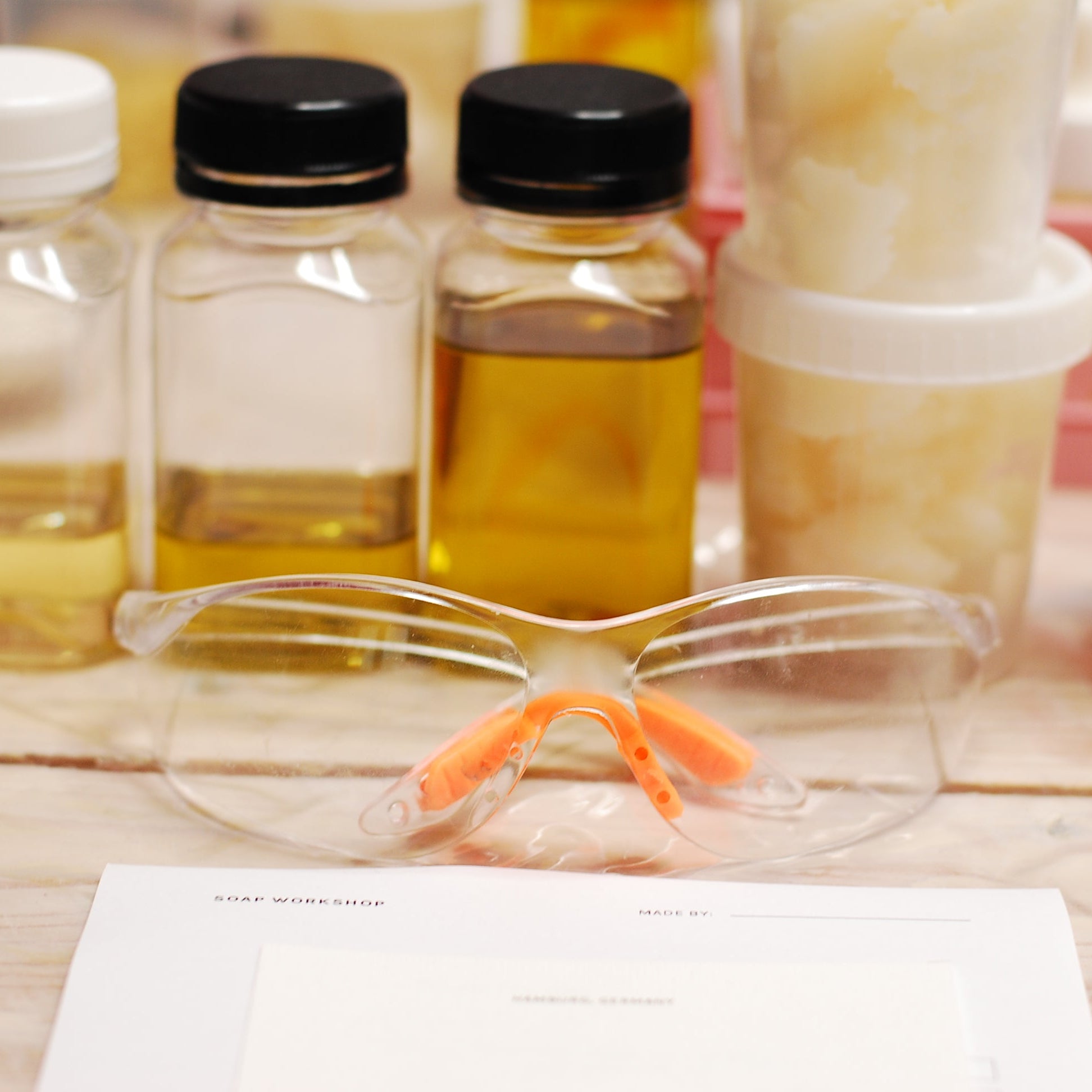 - 4 soaps made by you (90grs. each), 2 exfoliating and 2 moisturizing.