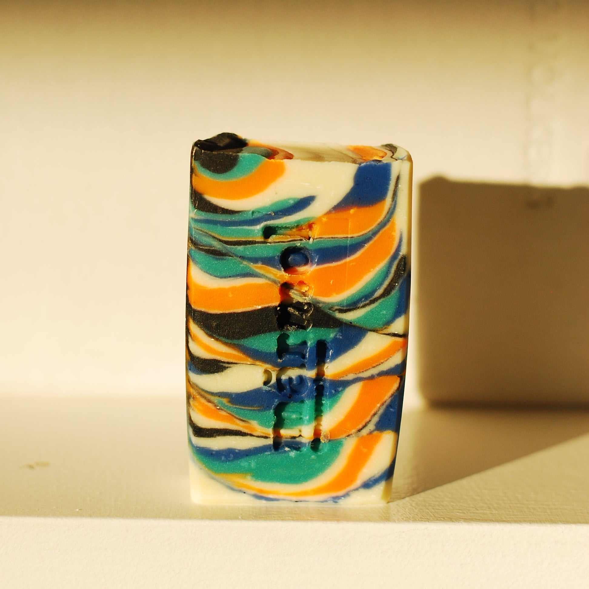 Ingredients: Olive oil, coconut oil, cocoa butter, sweet almond oil. Micas. Titanium Dioxide. Sodium hydroxide. Water.